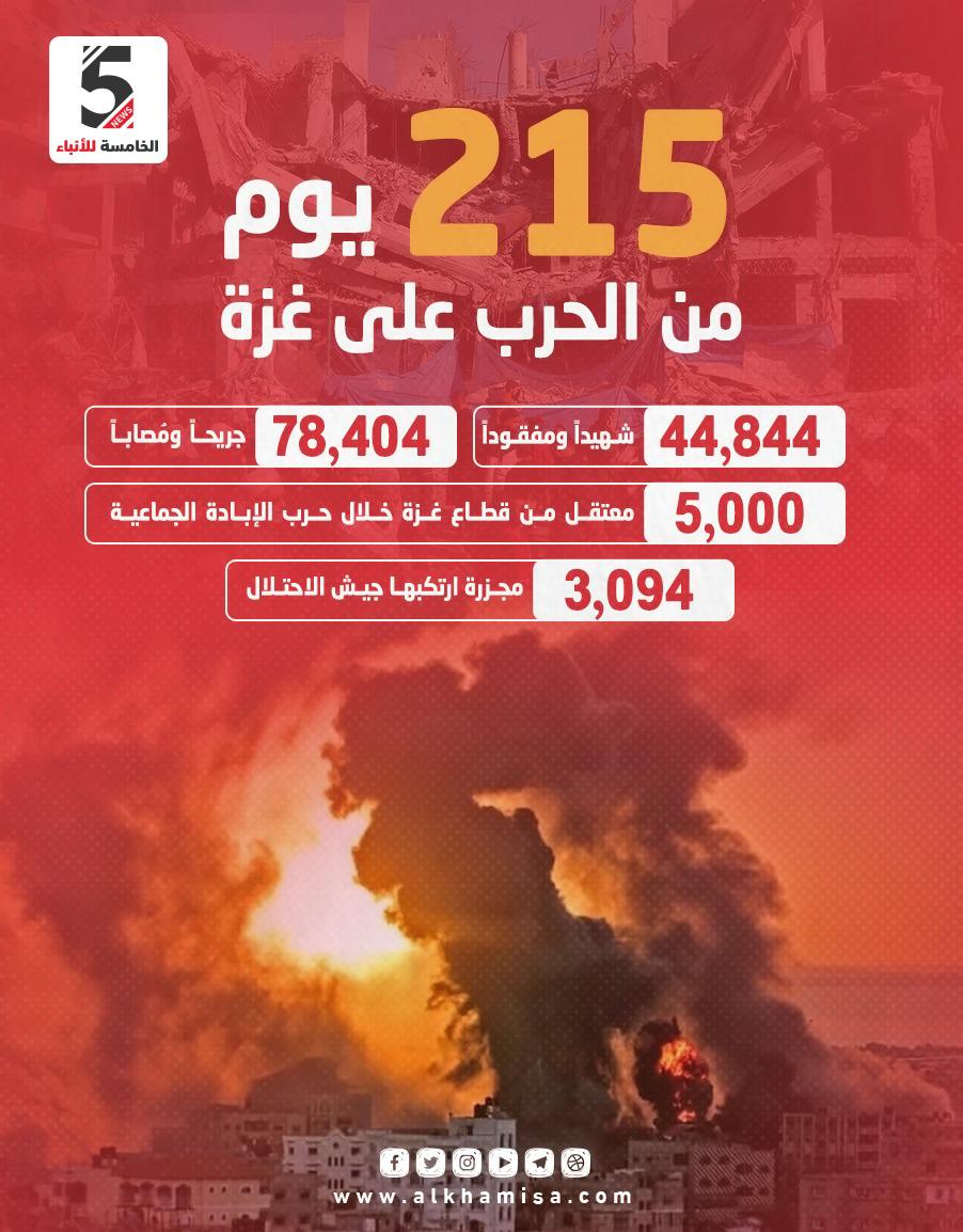 الرئيسية/انفو جرافيك الخامسة/إحصائيات حرب الإبادة الجماعية على غزة لليوم 215 انفو جرافيك الخامسةطوفان الأقصى إحصائيات حرب الإبادة الجماعية على غزة لليوم 2159 مايو، 2024 شبكة الخامسة للأنباء - غزة الوسوم#احصائيات #العدوان_الاسرائيلي #جيش_الاحتلال #حرب_غزة #شهداء #طوفان_الأقصى #قطاع_غزة #مجزرة نسخ الرابط تم نسخ الرابط 9 مايو، 2024 شاركها فيسبوك X ماسنجر ماسنجر واتساب تيلقرام طباعة