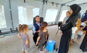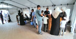 جانب من حملة التطعيم ضد شلل الأطفال في المحافظة الوسطى صباح اليوم.