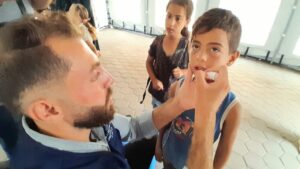جانب من حملة التطعيم ضد شلل الأطفال في المحافظة الوسطى صباح اليوم