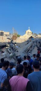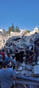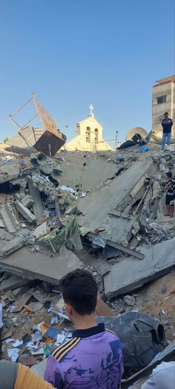 شبكة الخامسة للأنباء _غزة مشاهد من تدمير كنيسة الروم الارثوزكس بحي الزيتون من قبل الاحتلال الصهيوني