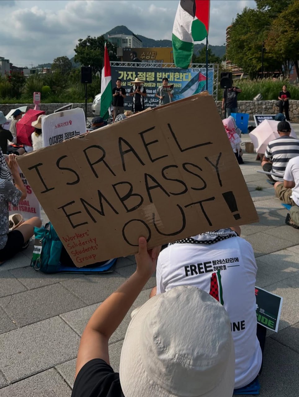 تظاهر العشرات أمام سفارة الاحتلال في العاصمة الكورية الجنوبية، احتجاجًا على استمرار العدوان الإسرائيلي على قطاع غزة. ورفع المشاركون لافتات تطالب بوقف الحرب فورًا، وتوفير حماية دولية للمدنيين، مؤكدين تضامنهم مع الشعب الفلسطيني في وجه ما وصفوه بالإبادة الجماعية والحصار المتعمد.