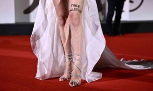 في حفل الافتتاح الذي أقيم مساء 28 آب / أغسطس في مدينة فينيسيا الإيطالية، ظهر أحد الحضور من صناع السينما مرتديا قميصا يحمل عبارة “فلسطين حرة”، بينما حملت الممثلة الإيطالية علامة خشبية تحمل عبارة “أوقفوا الإبادة الجماعية في غزة”.