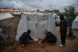 يواجه شعبنا في غزة معاناة و مصيرهم بأنفسهم في ظل الحرب المدمرة التي يشنها جيش الاحتلال الإسرائيلي و تساقط الأمطار باستمرار عليهم في الخيام والمدارس التابعة لوكالة الغوث الأونروا.