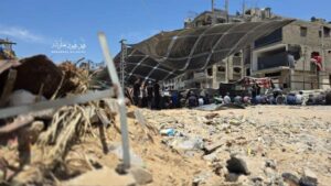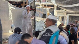 رغم الاجتــياح الواسع لمخيم جباليا وتدمــيره .. أهالي المخيم يُقيمون خطبة وصلاة الجمعة بين الركــام والدمــار