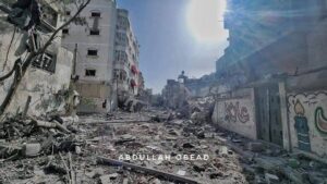 صور من آثار الدمار في مشروع بيت لاهيا شمال قطاع غزة منطقة ما بعد مسجد القسام.