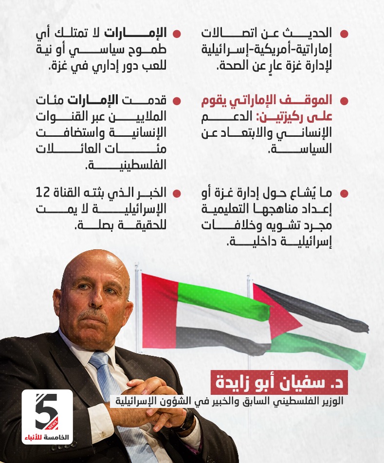 أبو زايدة : الموقف الاماراتي يقوم على ركيزتين الدعم الانساني والابتعاد عن السياسة