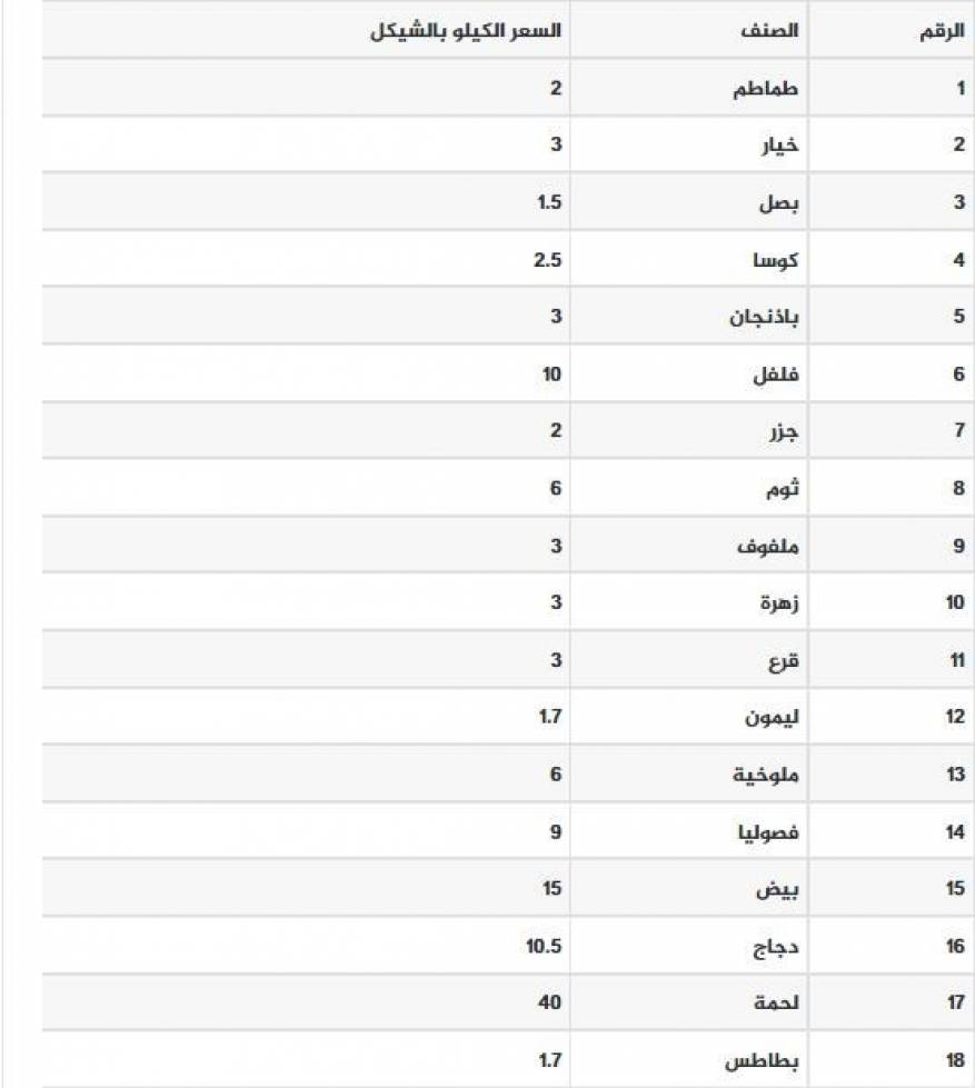 ونوهت الوزارة إلى أن متوسط أسعار المنتجات الزراعية يجب ألا يزيد عن المدونة أدناه للمستهلك، وجاء على النحو التالي: