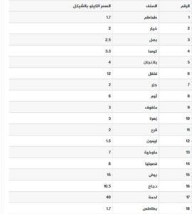 وجاء متوسط الأسعار وفقًا لوزارة الزراعة في قطاع غزة على النحو التالي: