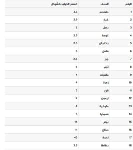 جاءت أسعار اللحوم والخضروات اليوم الجمعة، مفقاً لما نشرته وزارة الزراعة بغزة، على النحو التالي: