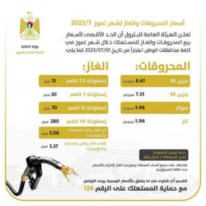 الخامسة للأنباء – غزة: أعلنت الهيئة العامة للبترول التابعة لوزارة المالية، أسعار المحروقات والغاز لشهر تموز/ يوليو.