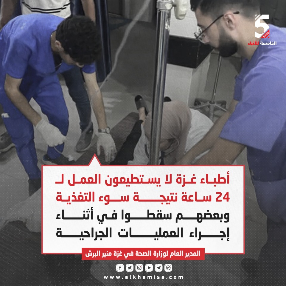 أطباء غزة لا يستطيعون العمل لـ ٢٤ ساعة نتيجة سوء التغذية
