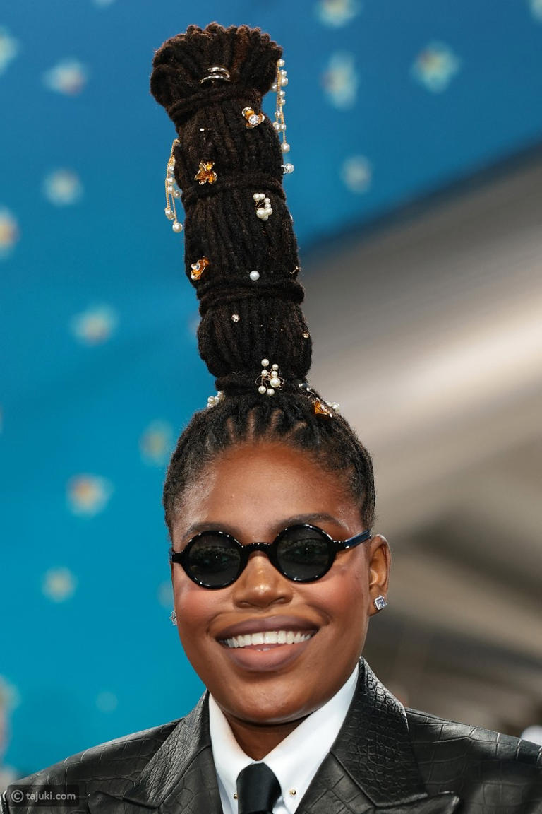 تسريحة الضفائر الإفريقية وتفاصيل اللؤلؤ في إطلالة Jonquel Q Jones الفريدة