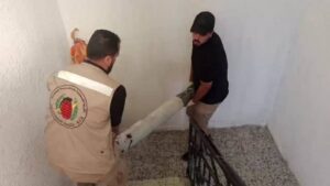 صور من مهام إدارة الأدلة الجنائية وهندسة المتفجرات بالشرطة في تفقد ومعاينة الأماكن المستهدفة من قبل الاحتلال بمحافظات غزة، وتحييد خطر الأجسام والقذائف غير المنفجرة.