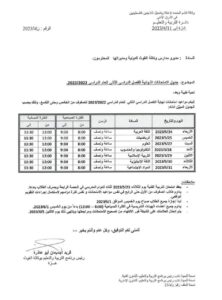 ونشرت وكالة غوث وتشغيل اللاجئين “أونروا” في وقت سابق جدول امتحانات نهاية الفصل الدراسي الثاني للعام الدراسي (2022-2023) .