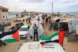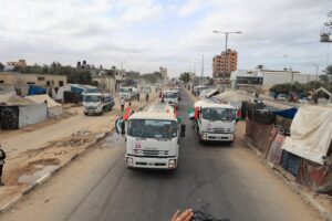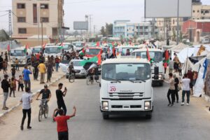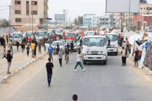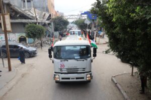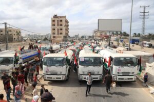 انطلقت اليوم عملية «الفارس الشهم 3» بموكب يضم 21 صهريج مياه، لتسليمها إلى مصلحة مياه بلديات الساحل في قطاع غزة، ضمن الجهود المستمرة لتأمين المياه للأسر المتضرّرة والمناطق التي تعاني من شحّ حاد، وسدّ العجز الذي تواجهه الهيئات المحلية في ظل الأوضاع الصعبة.