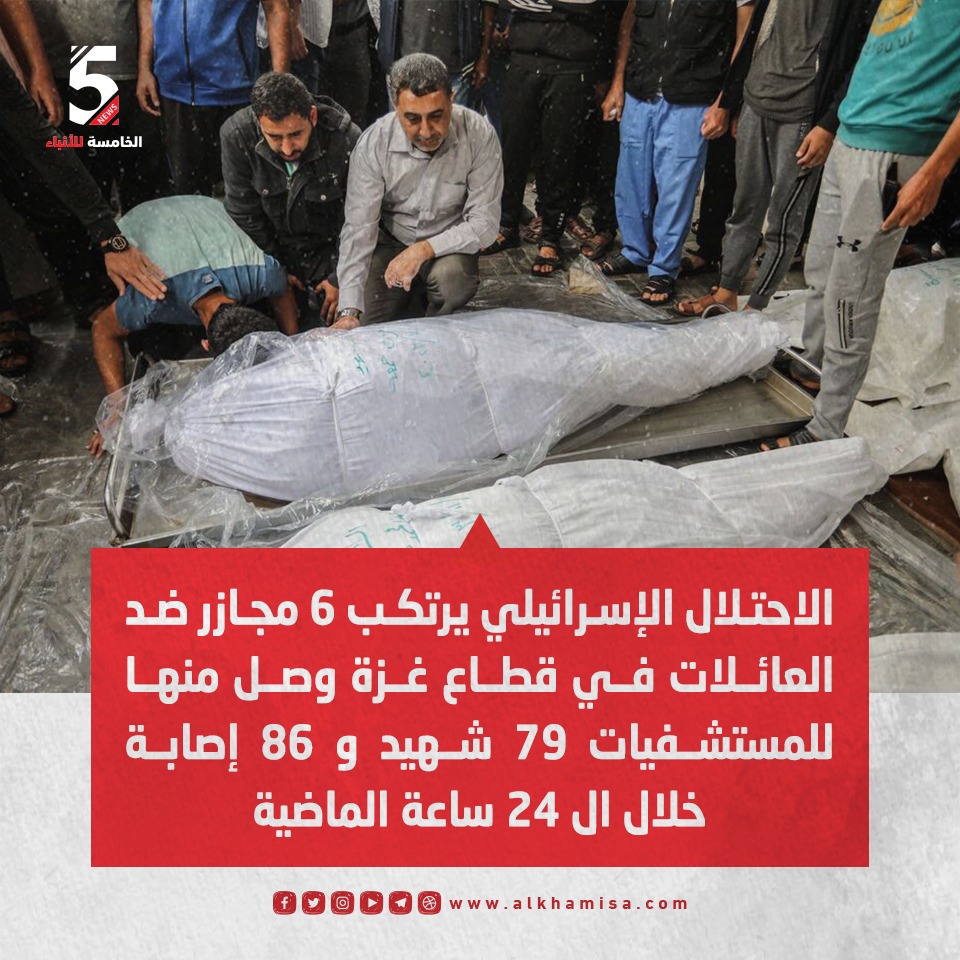 الاحتلال الإسرائيلي يرتكب 6 مجازر خلال ال٢٤ ساعة الماضية