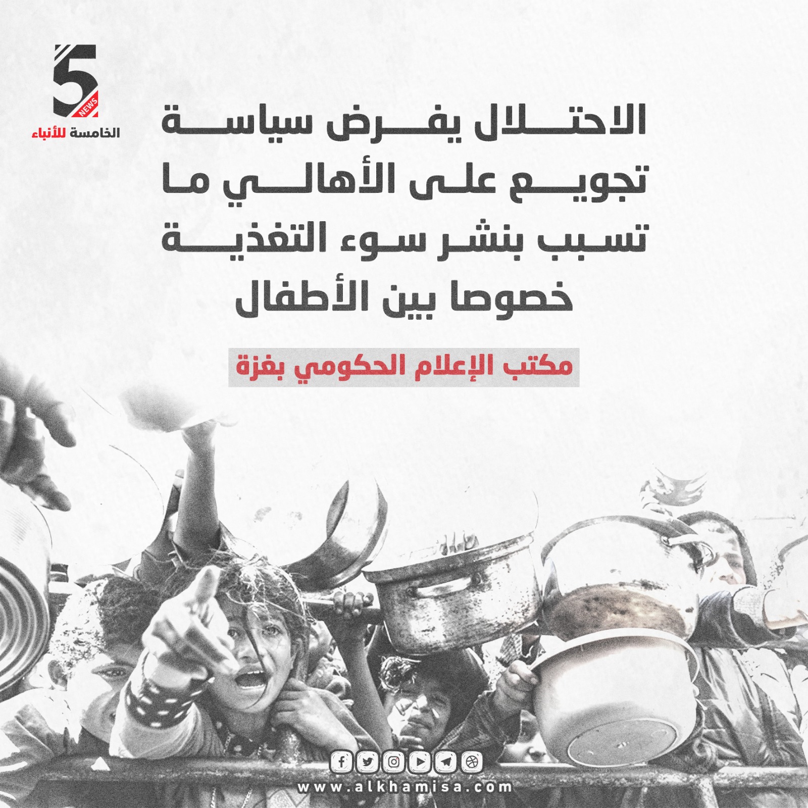 مكتب الاعلام الحكومي بغزة: الاحتلال يفرض سياسة تجويع على الأهالي ما تسبب بنشر سوء التغذية خصوصا بين الأطفال