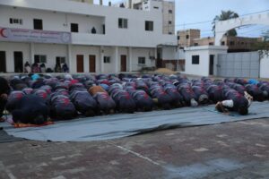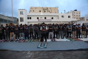 البعثة الإماراتية لعملية الفارس الشهم 3 في غزة، تؤدي صلاة العيد في مقر إقامتهم، وتشارك الغزيين الشعائر المباركة، وسط دعوات من المصلين، بأن يرفع الله الغمة عن فلسطين وأهلها.