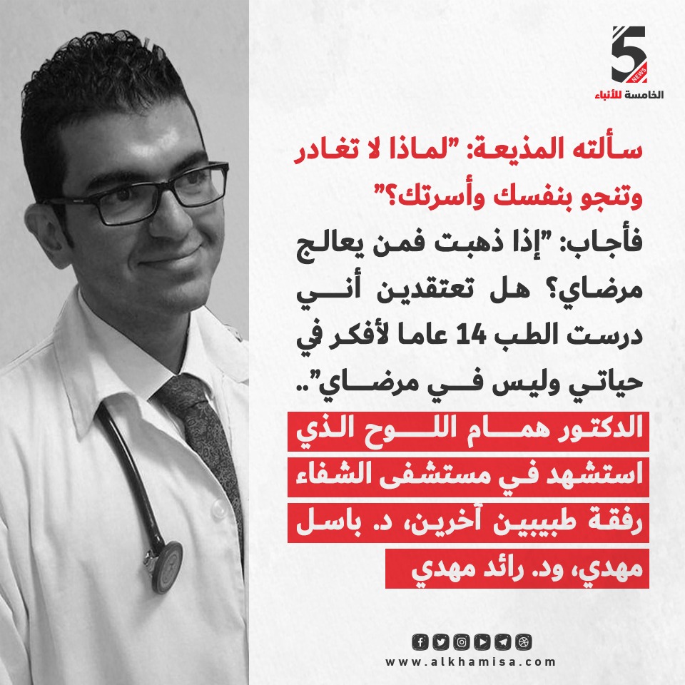 الرئيسية/بطاقات اخبارية/الدكتور همام اللوح الذي استشهد في مستشفى الشفاء بطاقات اخباريةطوفان الأقصى الدكتور همام اللوح الذي استشهد في مستشفى الشفاء13 نوفمبر، 2023 شبكة الخامسة للأنباء - غزة الوسوم#شهيد #طبيب #طوفان_الأقصى #قطاع_غزة #مستشفى #مستشفى_الشفاء #همام_اللوح نسخ الرابط تم نسخ الرابط 13 نوفمبر، 2023 شاركها فيسبوك X ماسنجر ماسنجر واتساب تيلقرام طباعة
