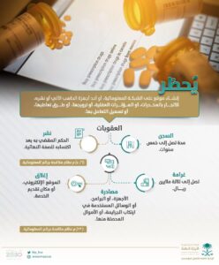 وأفادت بأن يعاقب كل من يخالف ذلك بالسجن مدة تصل إلى خمس سنوات، وغرامة بقيمة ثلاثة ملايين ريال، ومصادرة الأجهزة أو البرامج أو الوسائل المستخدمة في ارتكاب الجريمة أو الأموال المحصلة منها، مع نشر الحكم المقضي به بعد اكتسابه للصفة النهائية، وإغلاق الموقع الإلكتروني أو مكان تقديم الخدمة.