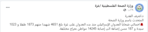 الصحة الفلسطينية: 4651 شهيدا أغلبهم من الأطفال جراء عدوان الاحتلال.. وأكثر من 14245 مصابا