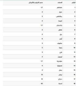 القائمة المحدثة بأسعار المنتجات الزراعية