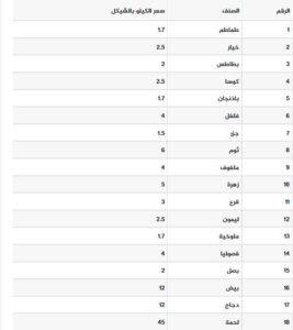القائمة المحدثة بأسعار المنتجات الزراعية