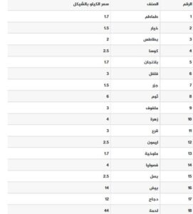 القائمة المحدثة بأسعار المنتجات الزراعية