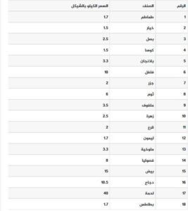 نشرت وزارة الزراعة بغزة، اليوم السبت، متوسط أسعار المنتجات الزراعية في السوق المحلية، مشيرة إلى أنها يجب ألا تزيد عن الأسعار المدونة أدناه للمستهلك.