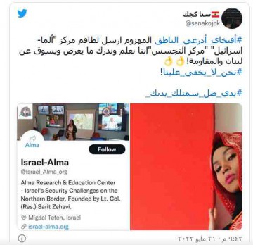 وذكرت الصحفية اللبنانية، سنا كجك، على صفحتها الخاصة على “تويتر” تفاصيل التجسس الإسرائيلي الجديد الذي يخرق لبنان مجددا وهذه المرة من خلال مركز أبحاث ودراسات يسمى “Israel-Alma”.
