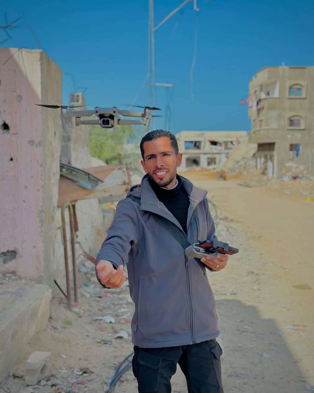 في مقطع مصور يظهر أنس فوق ركام ودمار وينظر لكاميرته الدرون تعلو فوق الدمار وبضحكة مريرة يحادث صديقه.: ” زمان كنا نصور بالدرون جمال غزة وشوارعها مزارعها وحتى أفراحها ومهرجاناتها .. لكن اليوم بنصور فقط الدمار والشهداء والقصف والخيام والأحزان والنكبات “.