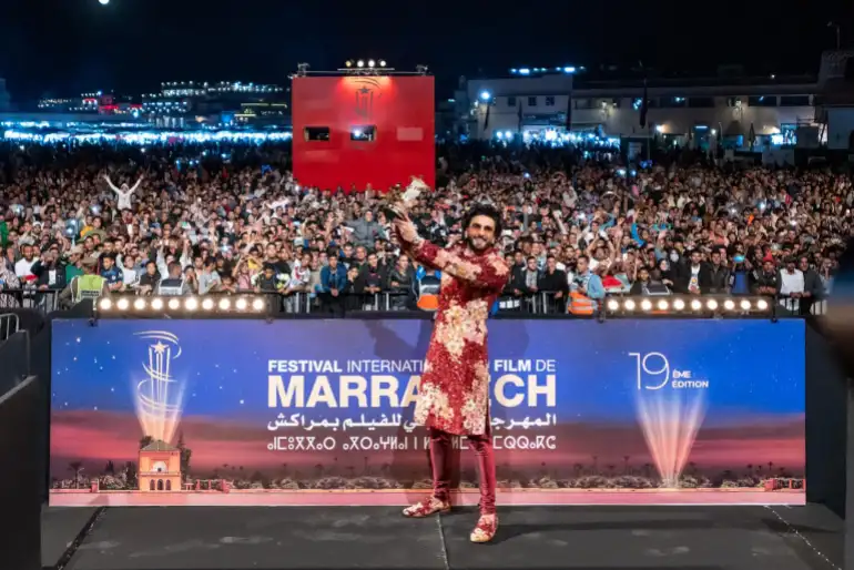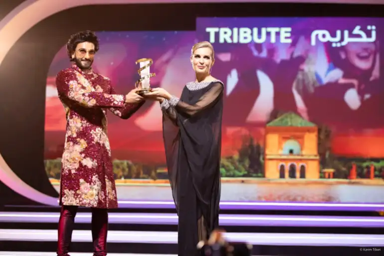 كانت البداية خلال حفل الافتتاح، حيث تم تكريم النجم السينمائي الهندي “رانفير سينغ” الذي تسلم النجمة الذهبية من يد مستشارة رئيس مؤسسة المهرجان الدولي للفيلم بمراكش ميليتا توسكان دو بلونتيي.