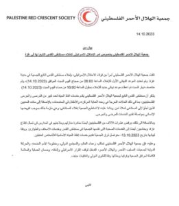 الهلال الأحمر: لا نستطيع إخلاء مستشفى القدس في غزة وملتزمون بتقديم الخدمات للمرضى والجرحى