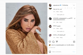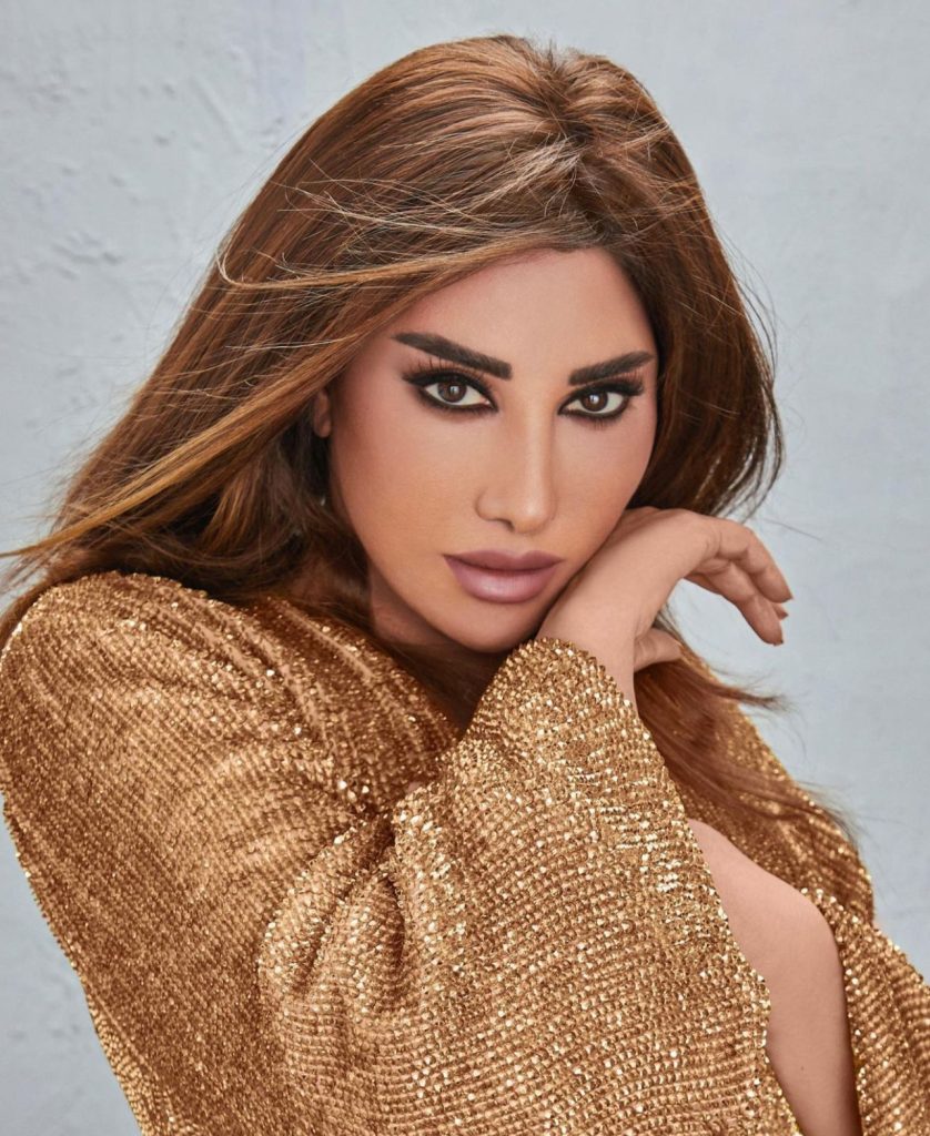 وبالصورة ظهرت نجوى وهي مرتديةً فستاناً ذهبي اللون راق لها وأظهر شياكتها وذوقها الرفيع بإختيار ملابسها، وإعتمدة على مكياج ناعم أظهر نعومتها كما وإعتمدت على لوك شعر جديد إختارت فيه على اللون البني الفاتح ما أظهر جمال وجهها.