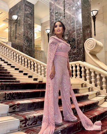 الفنانة لطيفة، التونسية اختارت جامبسوت زهري اللون من تصميم المصمم نجا سعادة ، فيه الكثير من الفخامة والجمال على الرغم من أنه ظهرت وكأنه واسع عليها خصوصاً من الجزء الأسفل ومع ذلك بدت لطيفة كالاميرات.