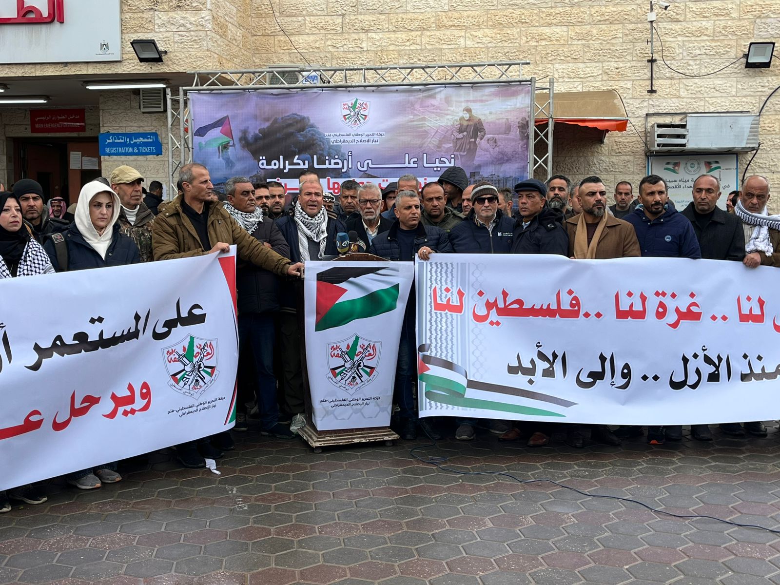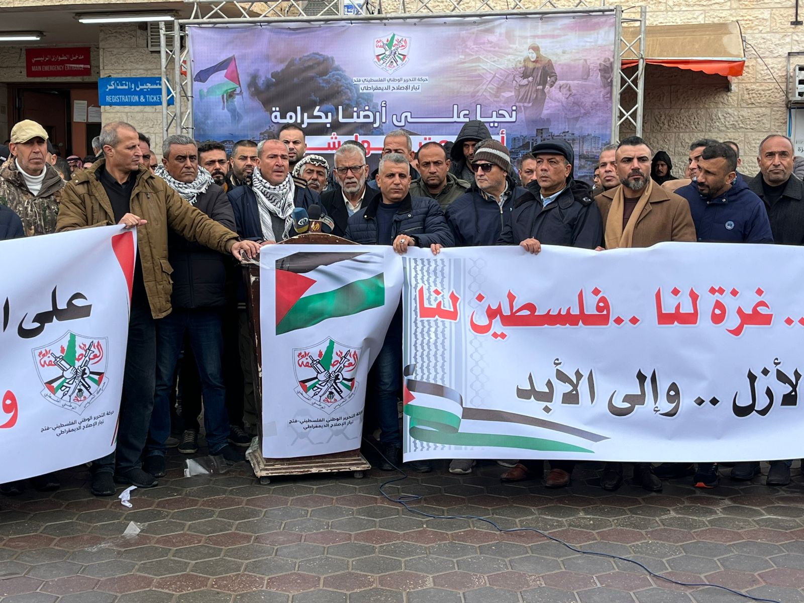 نظّم تيار الإصلاح الديمقراطي في حركة فتح اليوم وقفةً ومؤتمرًا صحفيًا في ساحة مستشفى شهداء الأقصى في دير البلح، أدان فيها التصريحات التي صدرت عن الرئيس الأميركي دونالد ترمب؛ والتي تحدث فيها عن رغبته في تهجير سكان قطاع غزة.