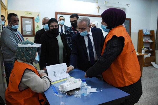 ورافق اشتيه، رئيس لجنة الانتخابات المركزية حنا ناصر، ومحافظ رام الله والبيرة ليلى غنام ، ووزير الحكم المحلي مجدي الصالح ، ومدير شرطة المحافظة العميد علاء شلبي.