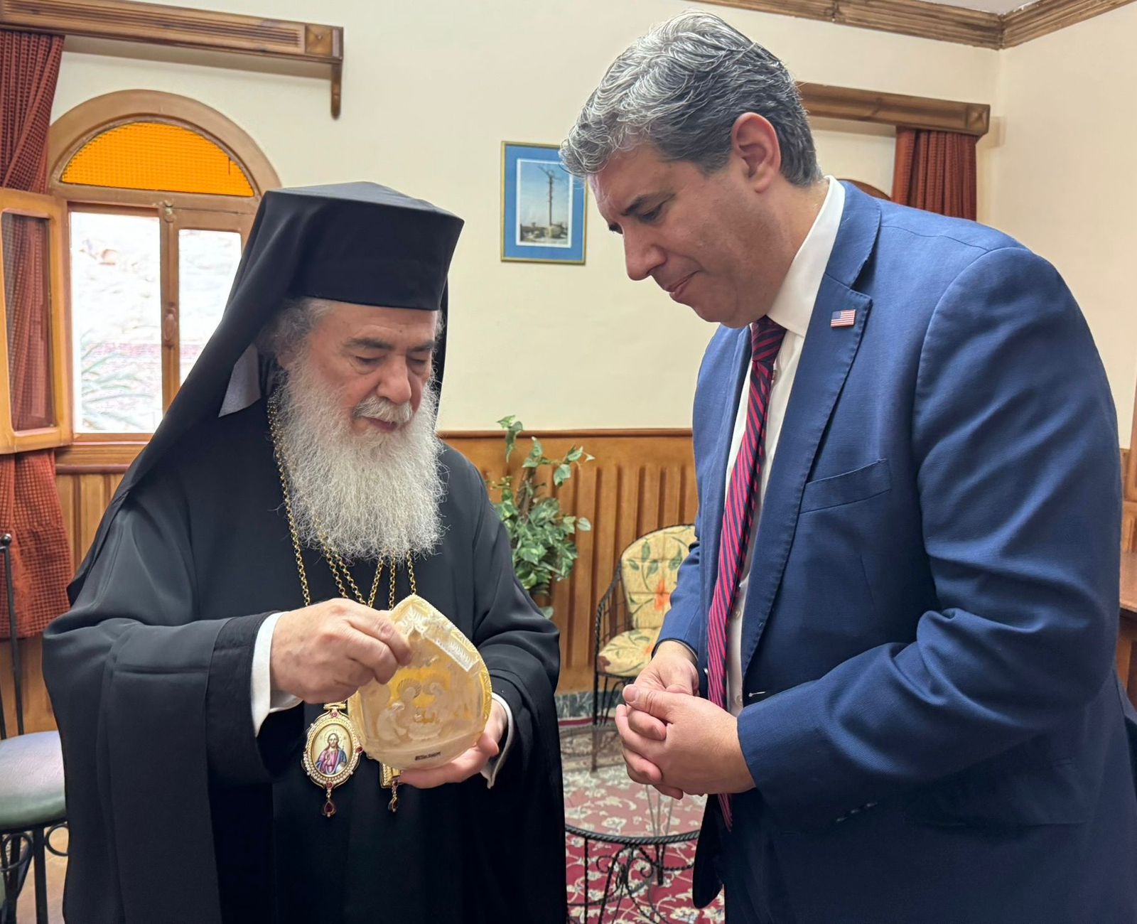والتقى غبطته بمعالي السيد شريف فتحي، وزير السياحة والآثار في جمهورية مصر العربية، ومعالي السفيرة الدكتورة ياسمين موسى، ممثلة معالي وزير خارجية جمهورية مصر العربية، فضلاً عن السيد مايكل ريغاس، ممثل الولايات المتحدة، وذلك لمتابعة الشؤون الكنسية والروحية وقضايا المقدسات في المنطقة.