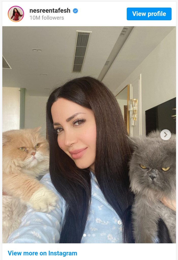 نشرت الفنانة السورية، نسرين طافش، مجموعة صور عبر حسابها الخاص على موقع التواصل الإجتماعي، تجمعها بإثنتين من قططها الصغيرة.