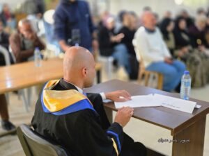 المحامي الكفيف محمد النجار يناقش رسالة الماجستير في غزة، رغم الحرب والنزوح وفقدان البيت.