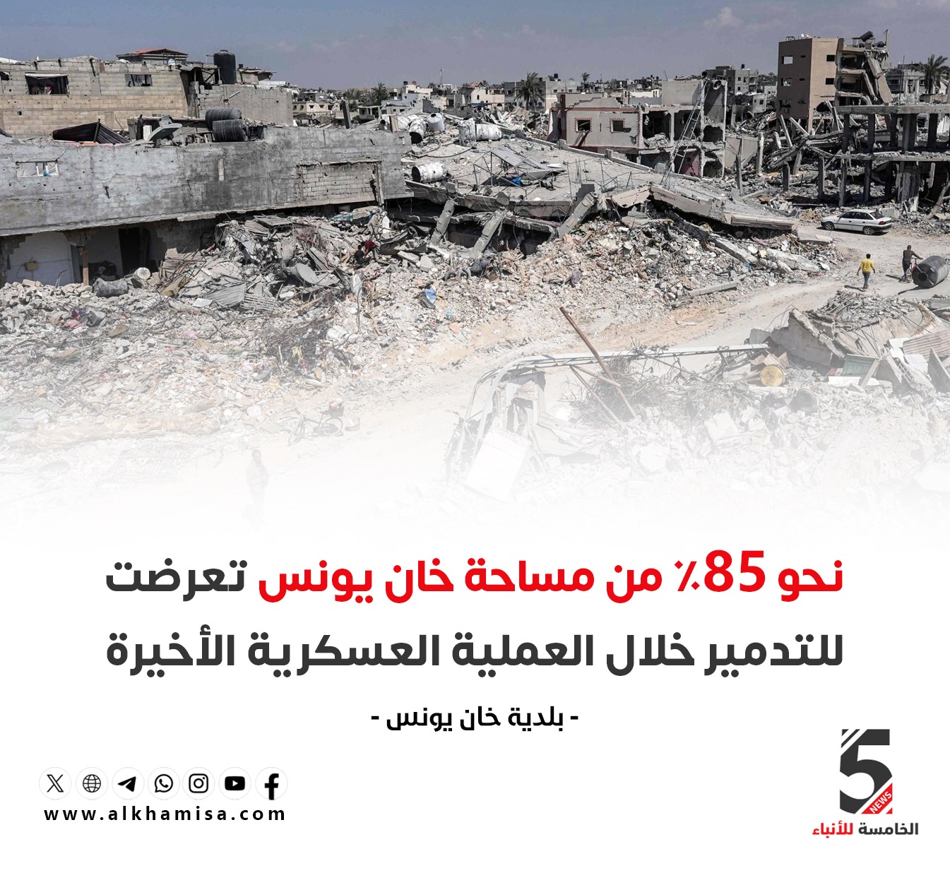 بلدية خانيونس : نحو 85٪ من مساحة خانيونس تعرضت للتدمير خلال العملية العسكرية الأخيرة