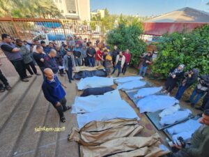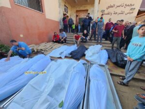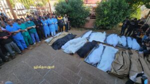 شبكة الخامسة للأنباء _غزة تشييع شهداء مجزرة مدينة حمد بخانيونس جنوب القطاع.