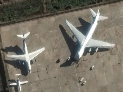وكشفت شركة MAXAR للتصوير بالأقمار الاصطناعية، الجمعة، عن صور لأقمار اصطناعية تظهر طائرات شحن روسية في مطار بسوريا تستعد لنقل معدات ثقيلة ومروحيات بعد تفكيكها، حسبما ذكرت صحيفة “واشنطن بوست” الأميركية.