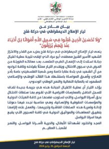 وتقدم التيار بقيادته وكافة كوادره من اهل الشهيد في بلدة عقابا خاصة ومن شعبنا الفلسطيني عامة بأحر التعازي وأصدق المواساة بإستشهاد هذا القائد الوطني والإسلامي المشهود له بالصلابة النضالية والنهج الوطني الوحدوي.