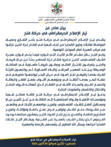 وأوضح التيار أنه يتابع بكل مشاعر الألم الأنباء التي تتوارد فيما يخص قوارب هجرة الشباب الفلسطيني، الذين غادروا قطاع غزة المحاصر بحثاً عن حياةٍ كريمة، والذين يتعرضون للابتزاز المالي ويعانون ظروفاً مأساويةً في المناطق الوسيطة بين بلد المهجر المرتقب والبلاد المجاورة، ثم يواجهون كارثة الغرق بعدما يلقيهم تجّار الموت في عرض البحر ليواجهوا مصيرهم في عتمة البحر بعدما أُغلقت في وجوههم الأبواب بفعل الفقر والبطالة وانحسار الفرص وانسداد الأفق في القطاع الذي أنهكته ظروف الحصار والاحتلال والانقسام والعقوبات الجائرة.