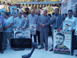 ورفع المشاركون بالوقفة، صوراً للأسير أبو حميد، مطالبين بالإفراج الفوري عنه.