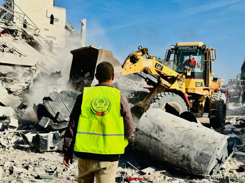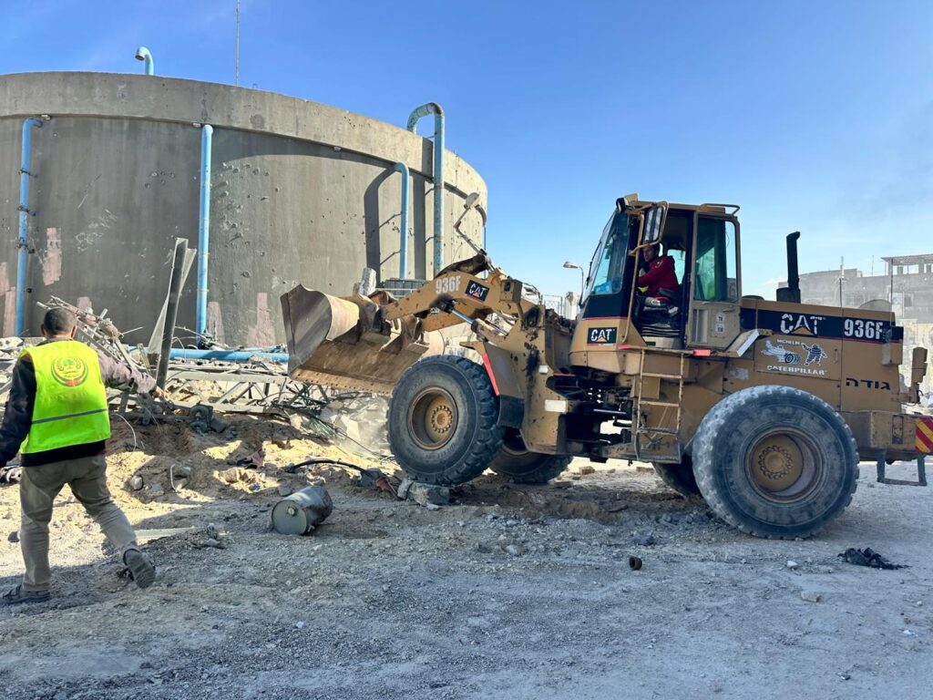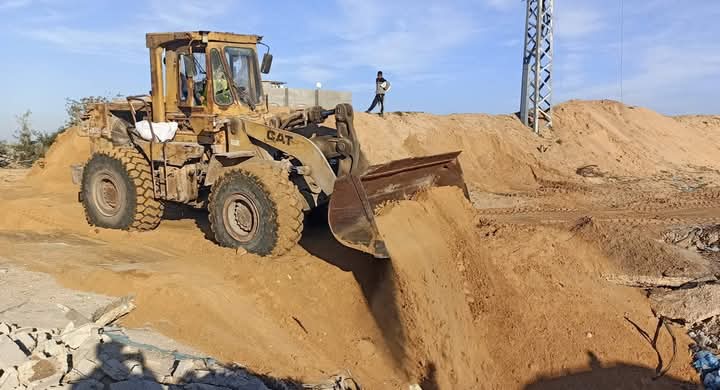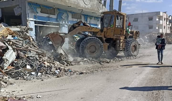 صور لجانب من عمل طواقم بلدية رفح بإعادة فتح الشوارع الرئيسية المغلقة في الأحياء التي انسحبت منها قوات جيش الاحتلال.
