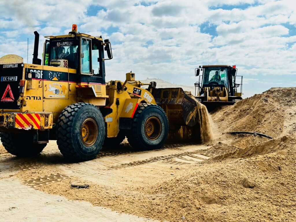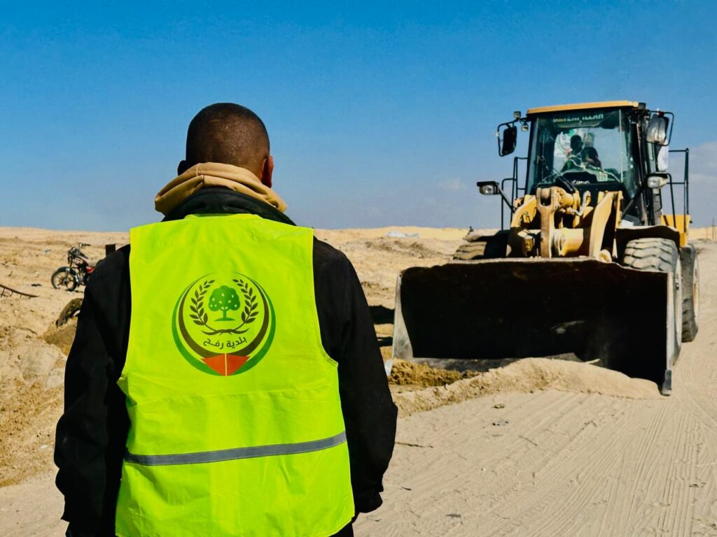 جانب من عمل طواقم بلدية رفح بإعادة فتح الشوارع الرئيسية المغلقة في الأحياء