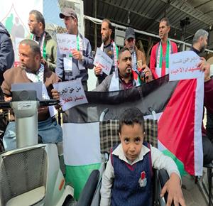 جرحى ومصابون فقدوا أطرافهم خلال الحرب يشاركون في وقفة احتجاجية