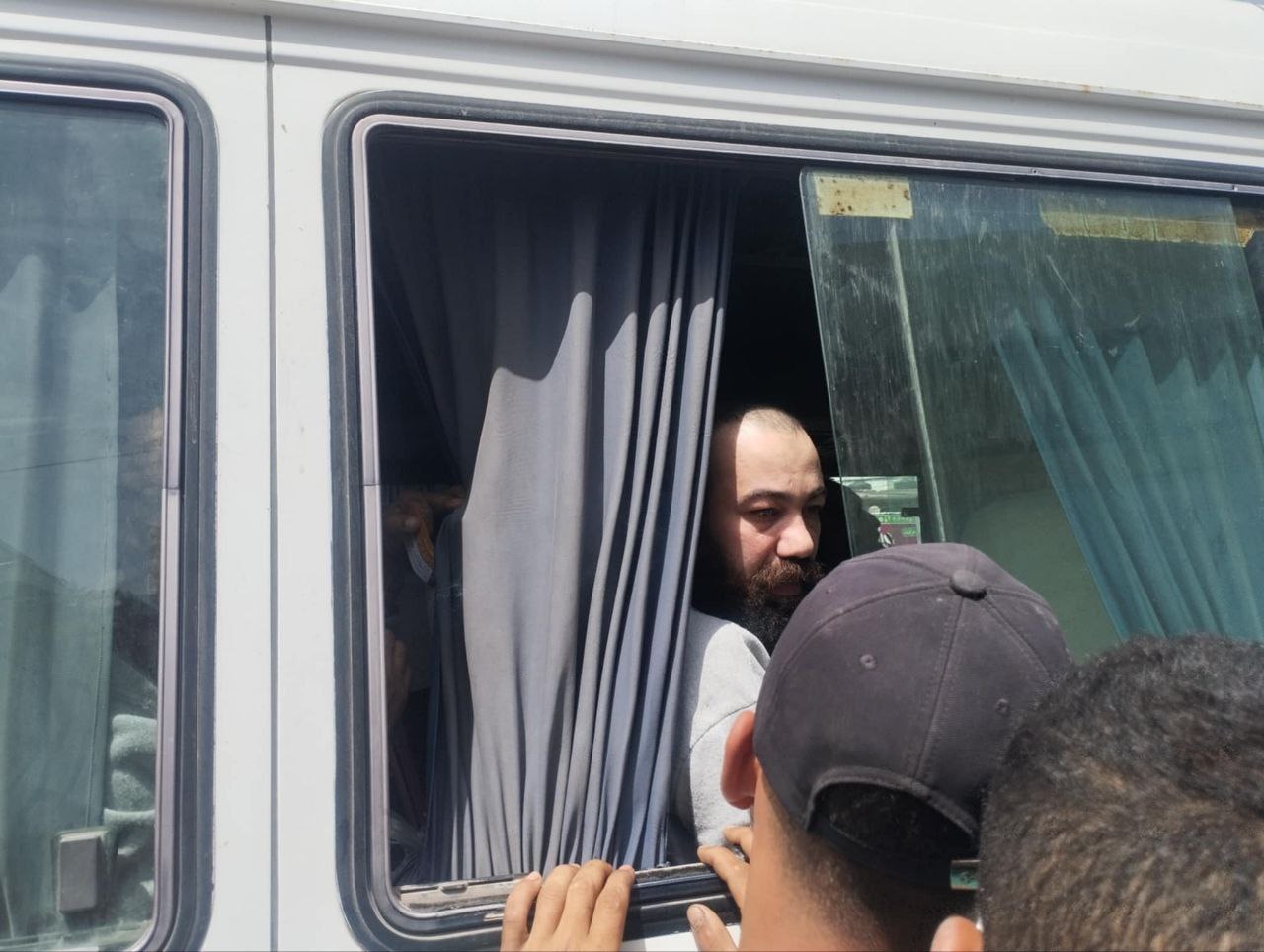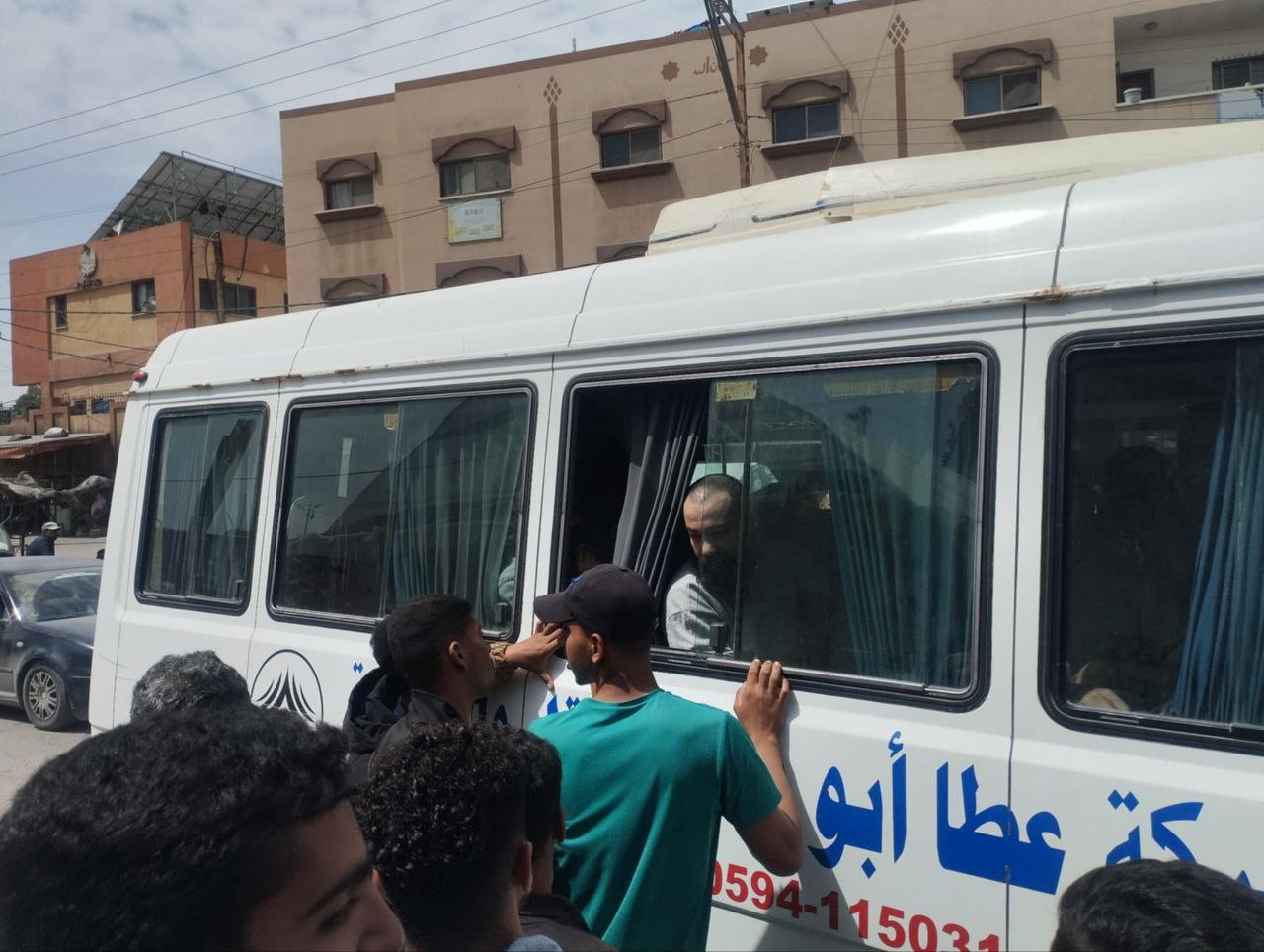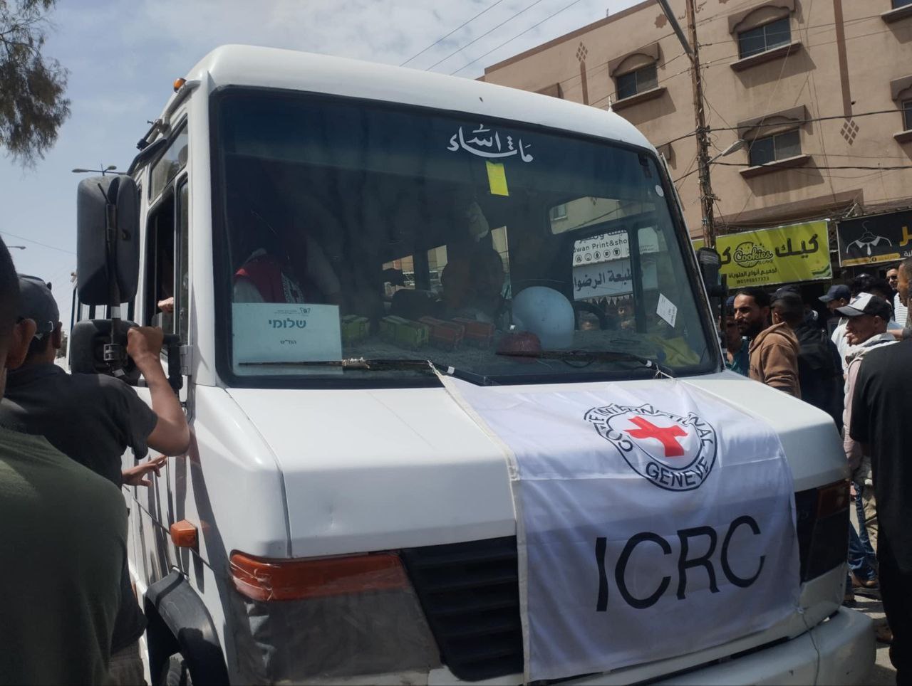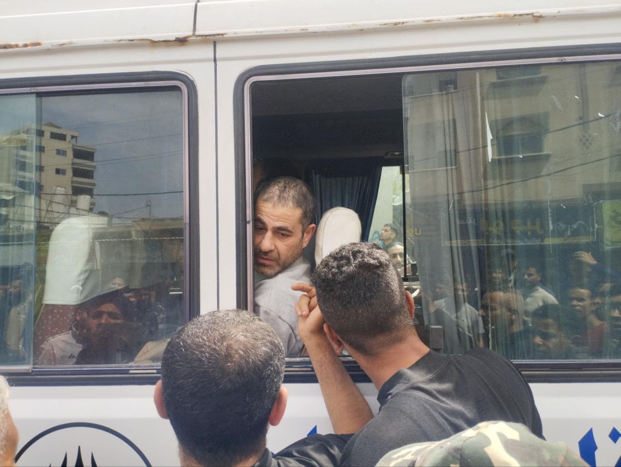 ووصل المعتقلون برفقة الصليب الأحمر الدولي إلى مشفى شهداء الأقصى بدير البلح .